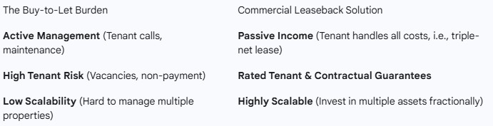 For many retail investors seeking an alternative, residential buy-to-let has been the accessible route. While it offers good yields in certain areas (like student towns and urban centres), it carries significant drawbacks that limit scalability for those aiming for institutional-grade returns: